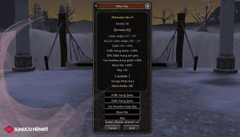 | KRİTİK , DELİCİ VURUŞ ŞANSI | 15 | 15 | 15 | 15 | 15 |